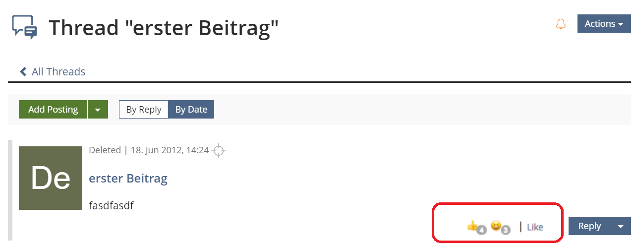 ich habe mir die Einträge im Jour Fix näher angeschaut und muss ehrlich sagen, dies entspricht nicht meinen Vorstellungen. Die Möglichkeit einen Like/Dislike abzugeben permanent im Beitrag sichtbar zu plazieren entspricht einer unreflektierten Übernahme von gängigen Systemen. Im unternehmerischen Kontext hat sich diese Sichtweise als kontraproduktiv gezeigt. Wenn die Möglichkeit eine Bewertung abzugeben permanent sichtbar ist, dann wird zum einen auch damit gespielt und zum anderen stellt es eine Ablenkung dar. Wird dagegen die Bewertung bewußt durch eine vom User initierte Interaktion eingeleitet, dann sind die genannten Aspekte nicht im Fokus beim rezepieren des Beitrages. Die Wahrscheinlichkeit einer Bewertung durch den User erfolgt meiner Meinung nach dann unvoreingenommener.