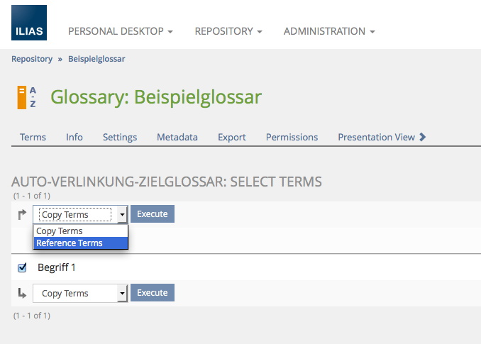 Now click the checkboxes of the desired terms, select "Reference Terms" from the drop down and "Execute".