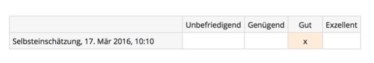 - Self-evaluation: a user states his or her own comeptence level on Personal Desktop or in 360° Survey (implemented)