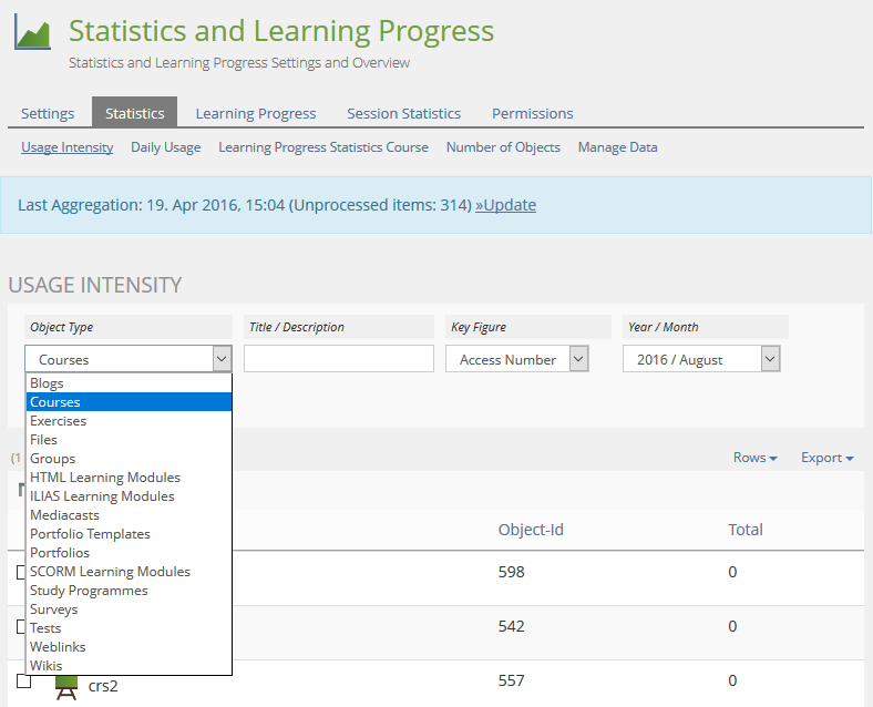 Statistic information about blogs and portfolios on the platform are missing in the Object Statistics in Administration. It would be highly appreciated if this information is there available, too.