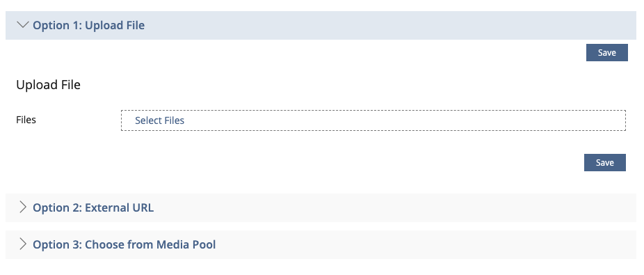 Similar to media casts the creation process will include an accordion with three options: