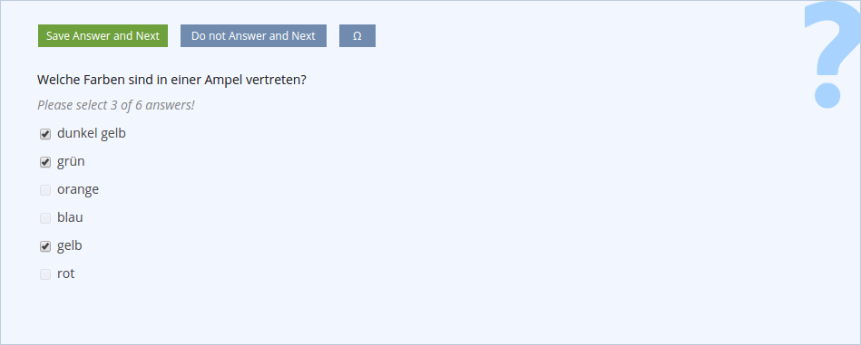 An optional restriction for the maximum amount of selectable options is required. This restriction has to affect while presenting the question in the test object as well as in the learning module. The question previews has to be considered too.