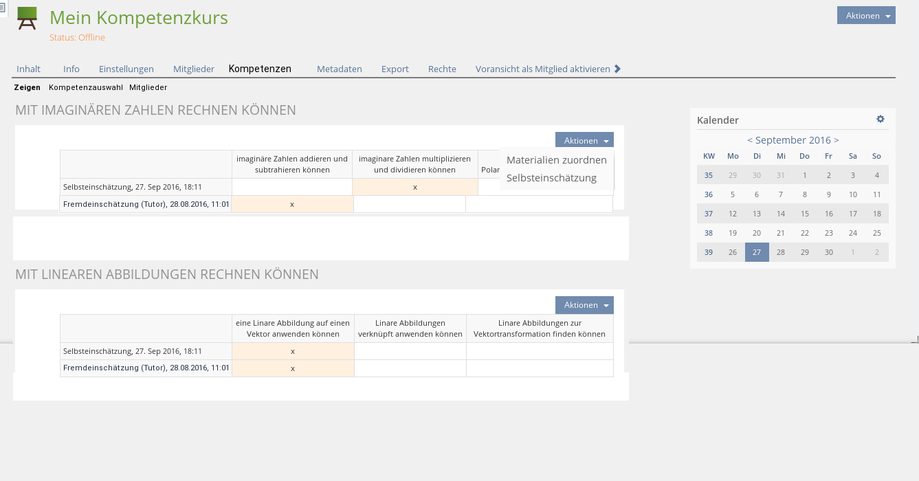 - Competences which have been assigned and publishedually should then be listed in the user's competence management (just like automatically assigned ones) or the "Show" screen of the course's competence tab.