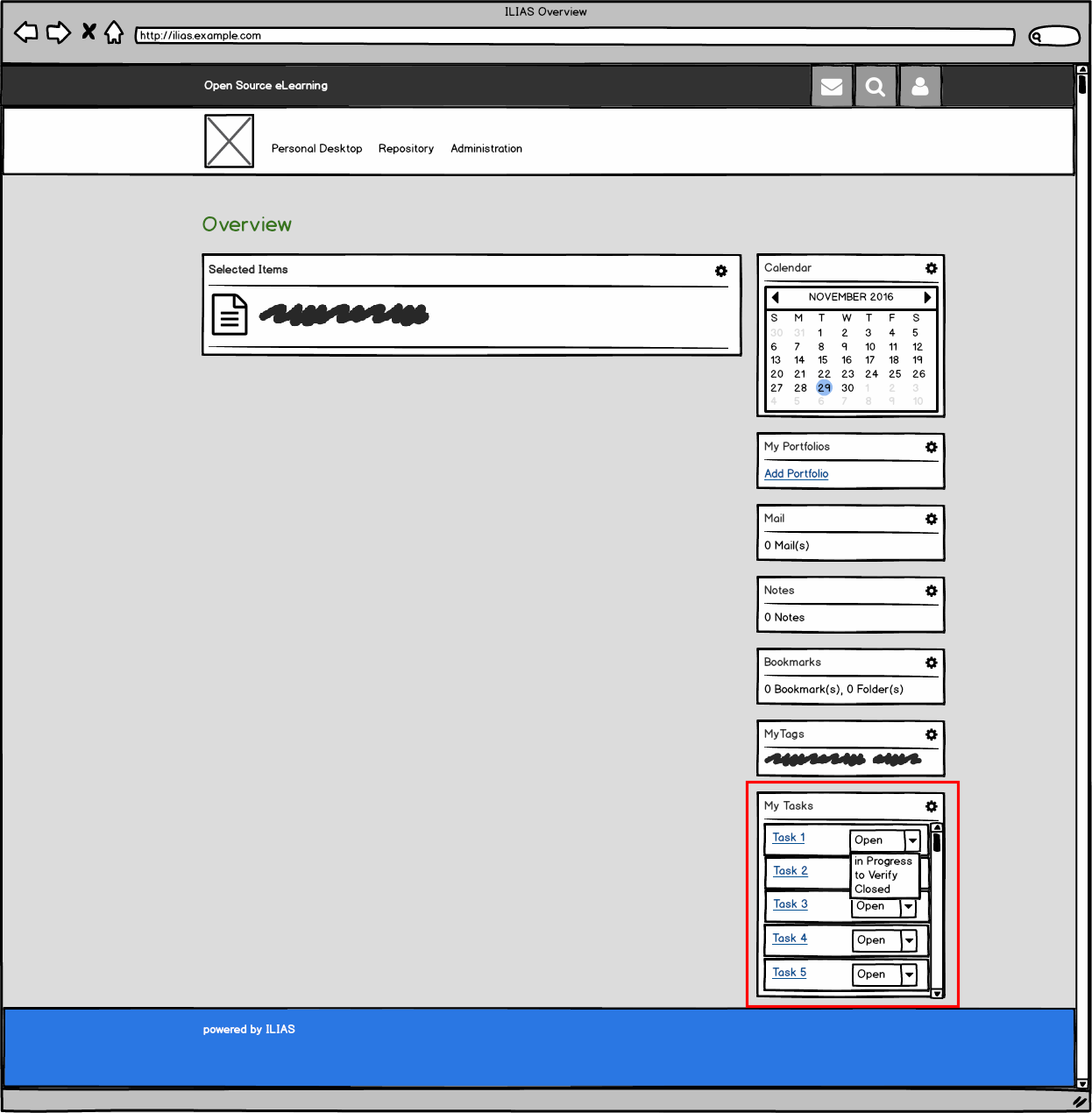 - A Personal Desktop component "Personal Taskoverview"