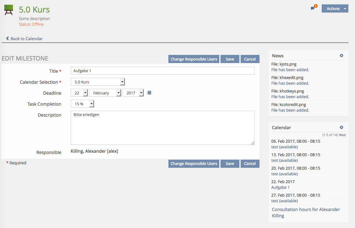 Killing, Alexander [alex], 3 Feb 2017: I think we really need to discuss the relation to the existing calendar feature. There seems to be quite a major redundancy in the functionality.