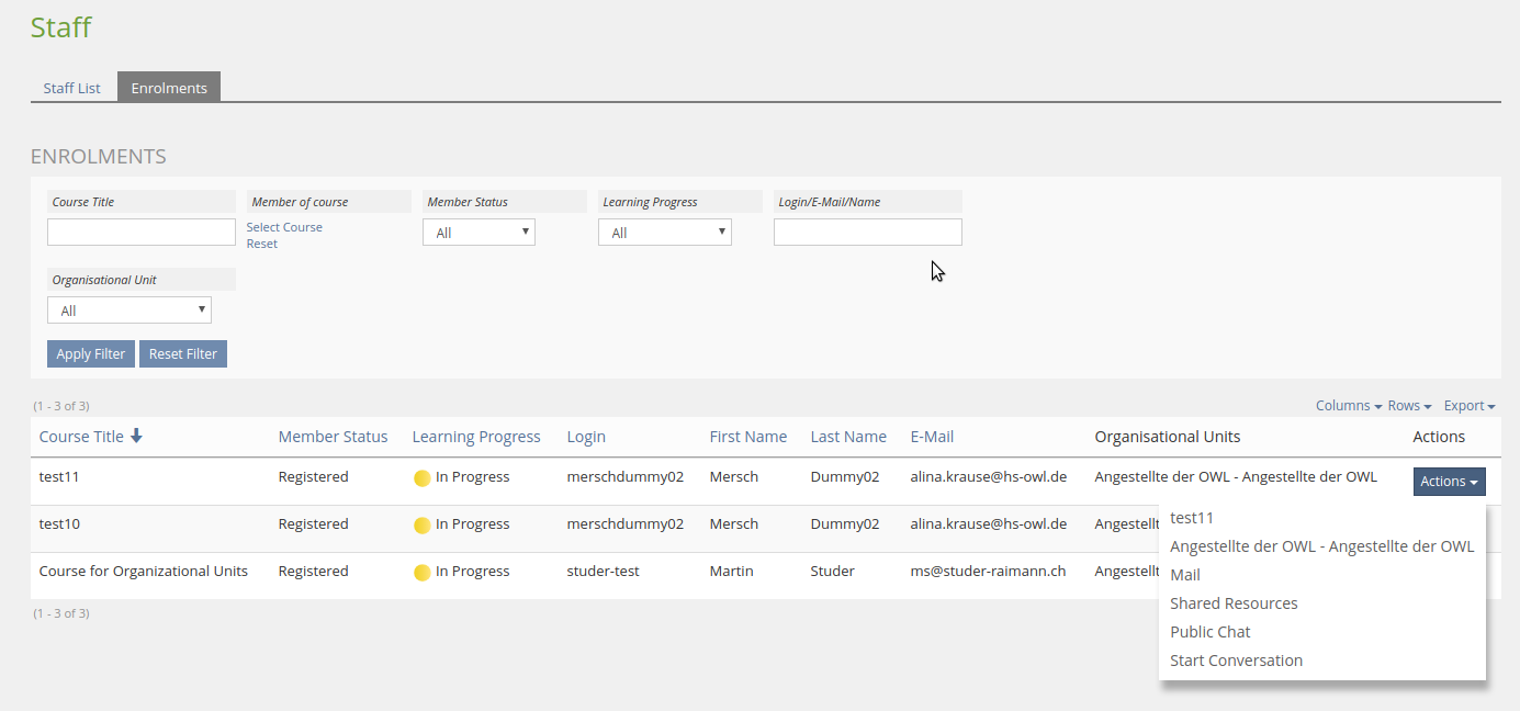 - https://testrail.ilias.de/index.php?/cases/view/18802: Filter "Enrolments [of Staff]" View