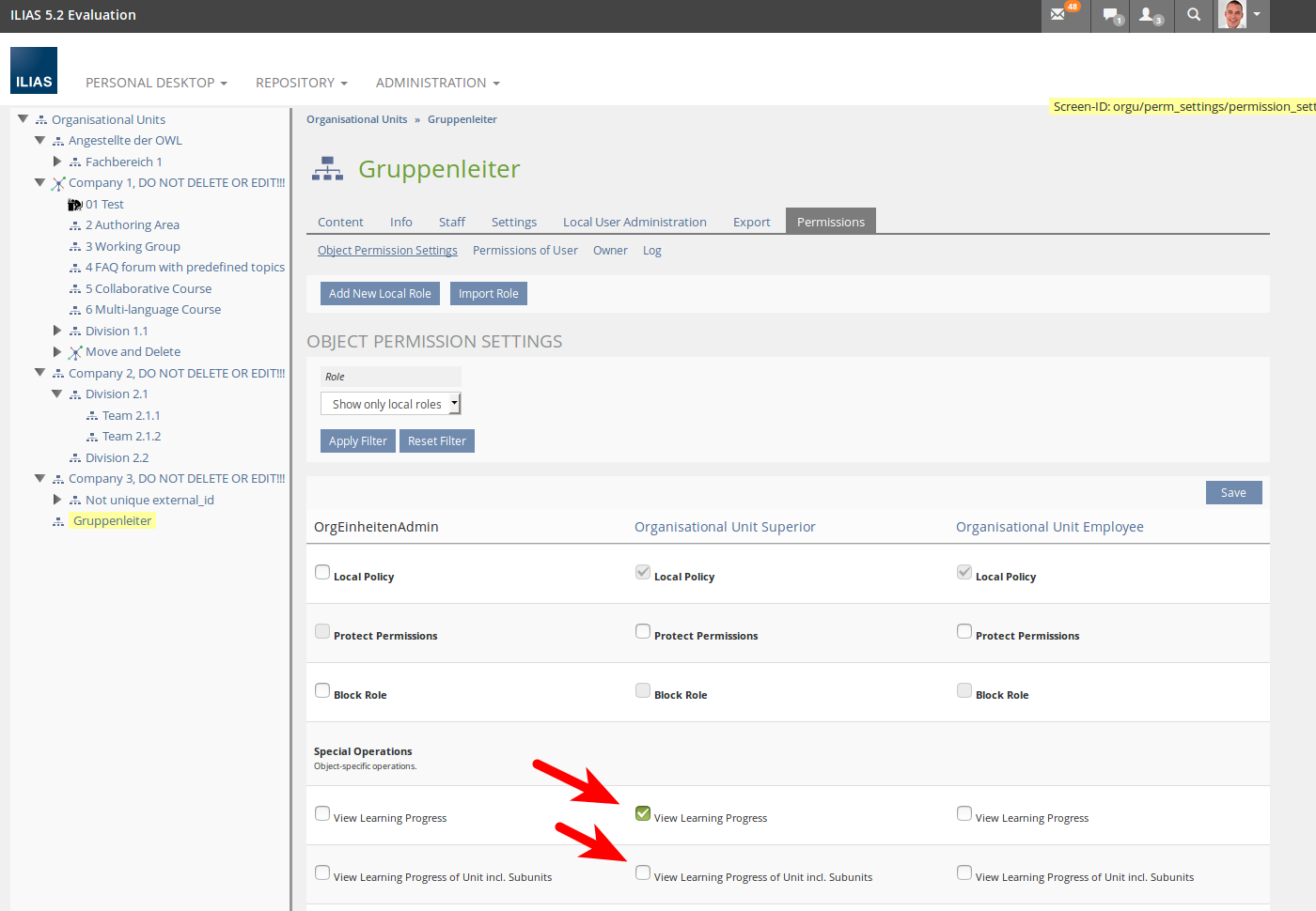 - https://testrail.ilias.de/index.php?/cases/view/18824: Show "Staff List" View (With "Superior" Position for an OU with More Than One Sub-unit and Assigned Users Each, and the Same Position for One of the Sub-units)