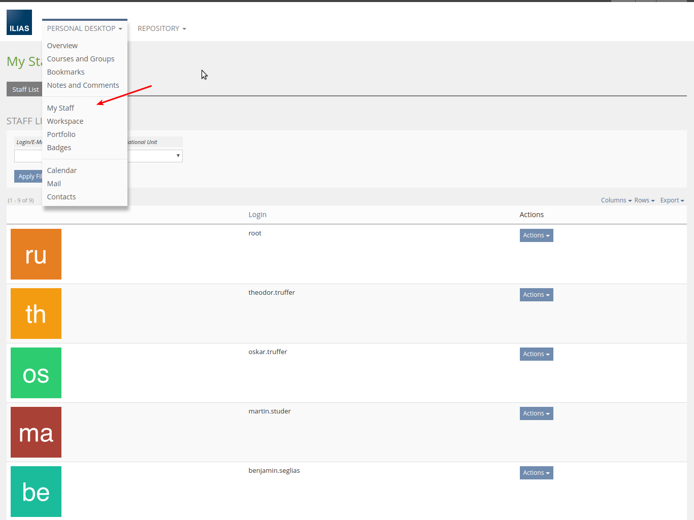 - We rename the feature 'My Staff' to 'Staff' according to a mainstreaming activity of getting rid of all 'My's in the Personal Desktop menu.