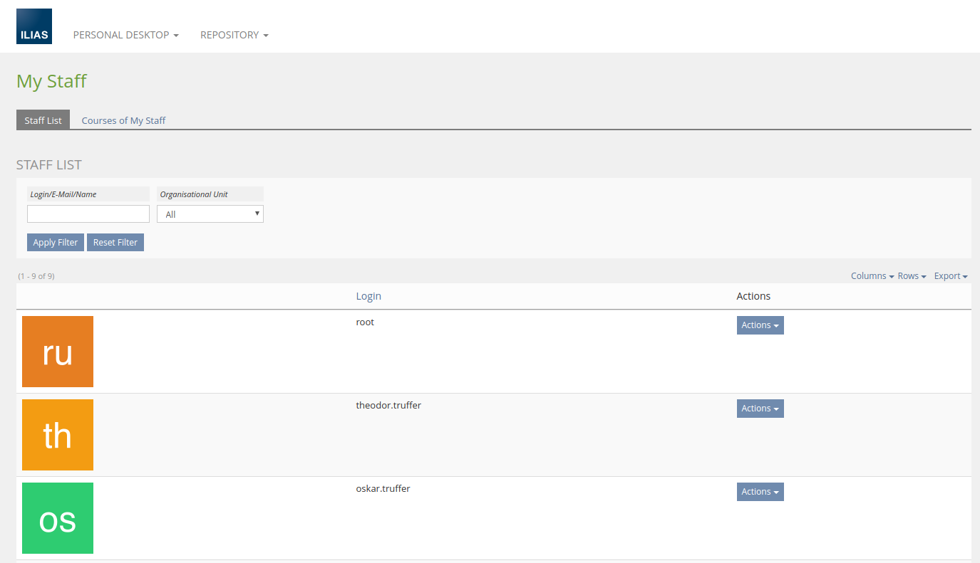- https://testrail.ilias.de/index.php?/cases/view/18808: Filter "Staff List" View