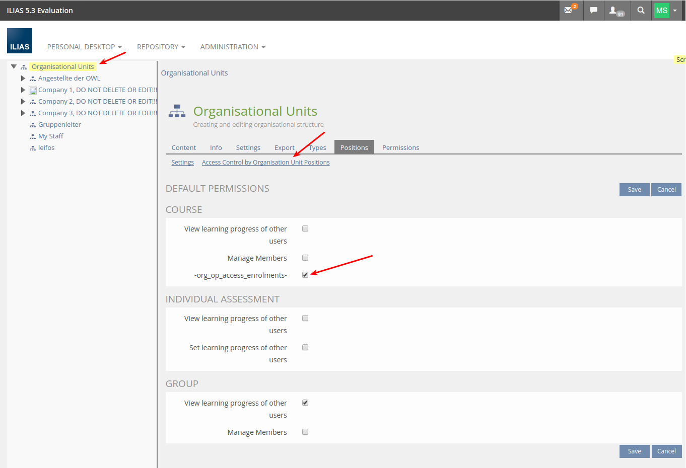 Configure Permissions (Introducing Positions for Granting Permissions over Users via Organisational Units)
