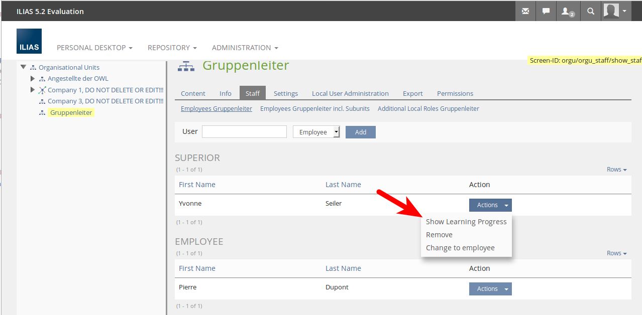 - https://testrail.ilias.de/index.php?/cases/view/18828: Show "Staff List" View (With "Superior" Position for an OU with More Than One Sub-unit and Assigned Users Each)