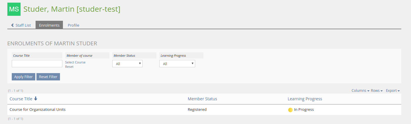 - https://testrail.ilias.de/index.php?/cases/view/18804: Export View of "Enrolments [of Staff]" View