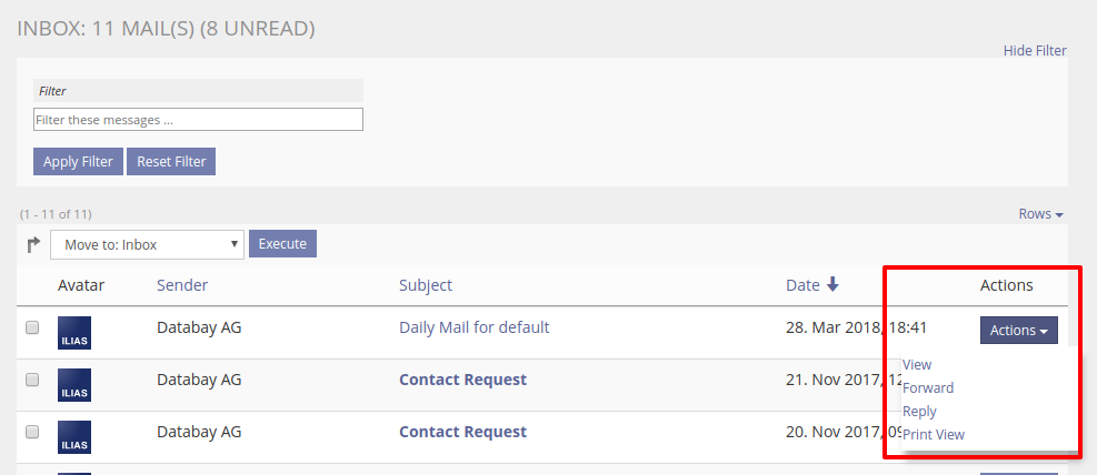 - C24720 : Posteingang verwalten - Zeilenaktionen