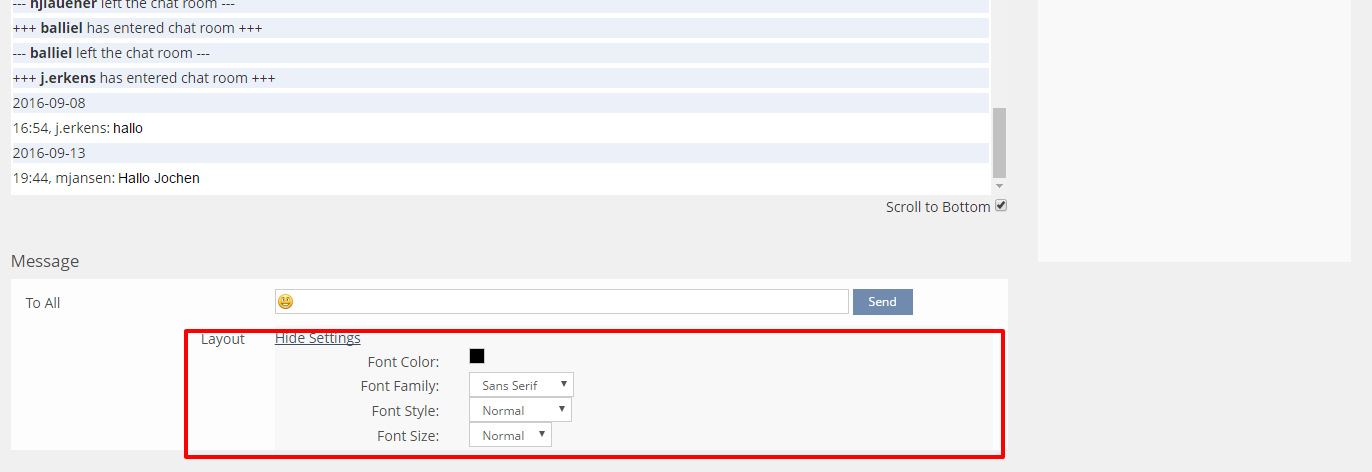 The layout settings part of the message form of ILIAS repository chat objects should be removed. The message format (color, style, etc.) of existing chat messages will not be affected by this change.