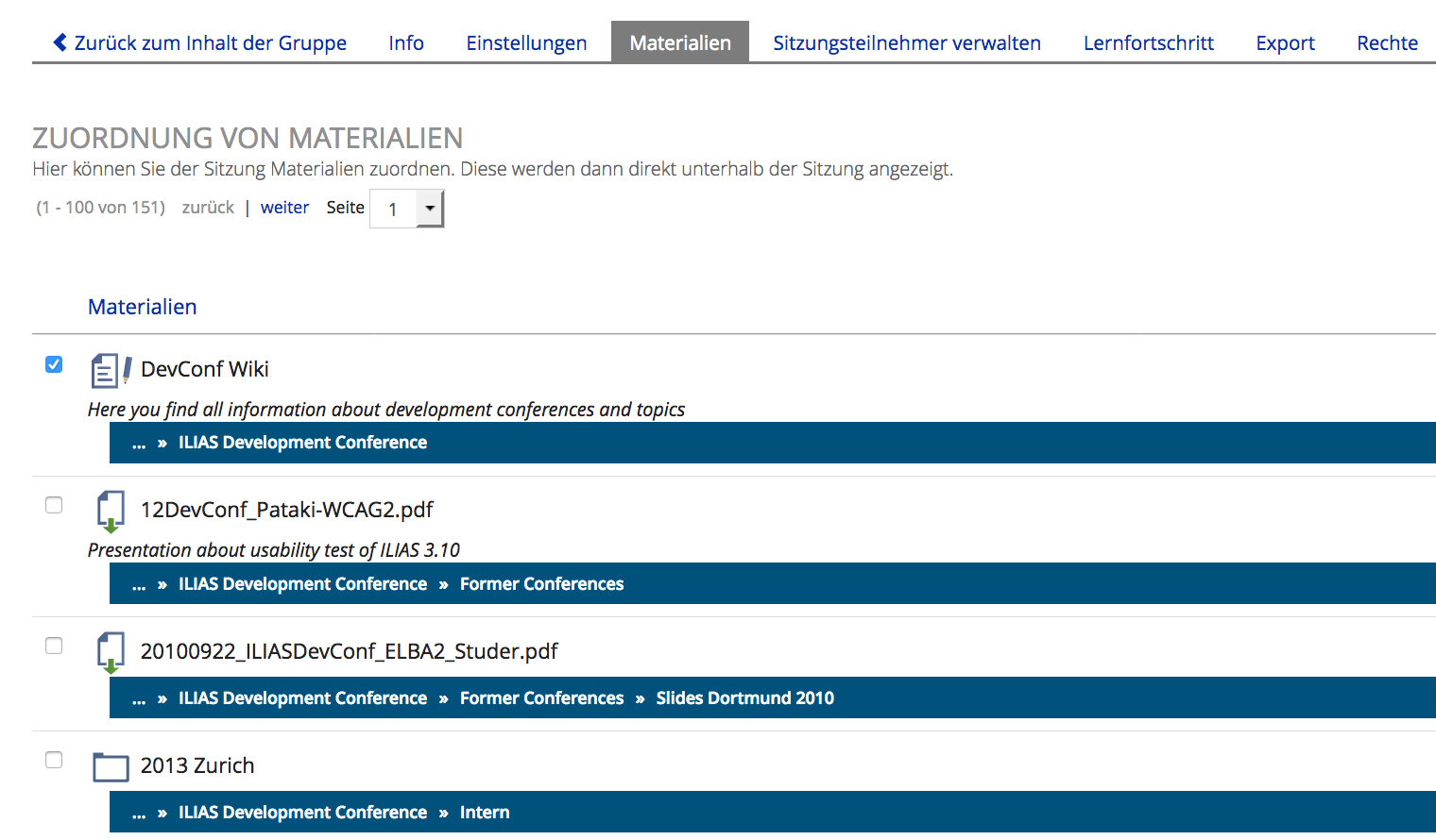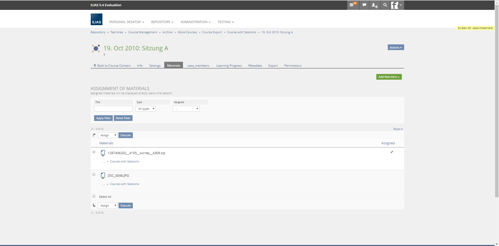 - C746: Vorhandene Materialien einer Sitzung zuordnen