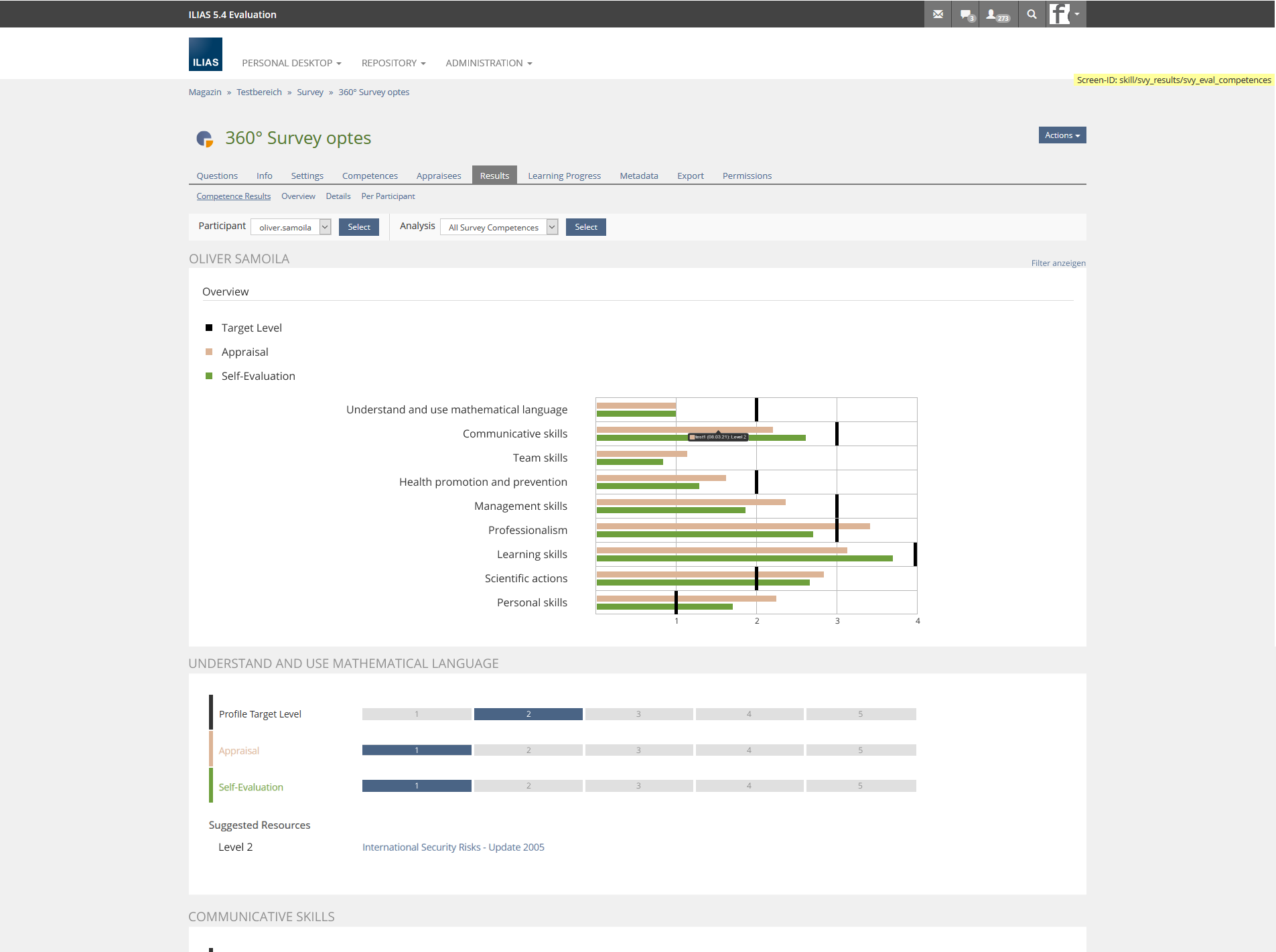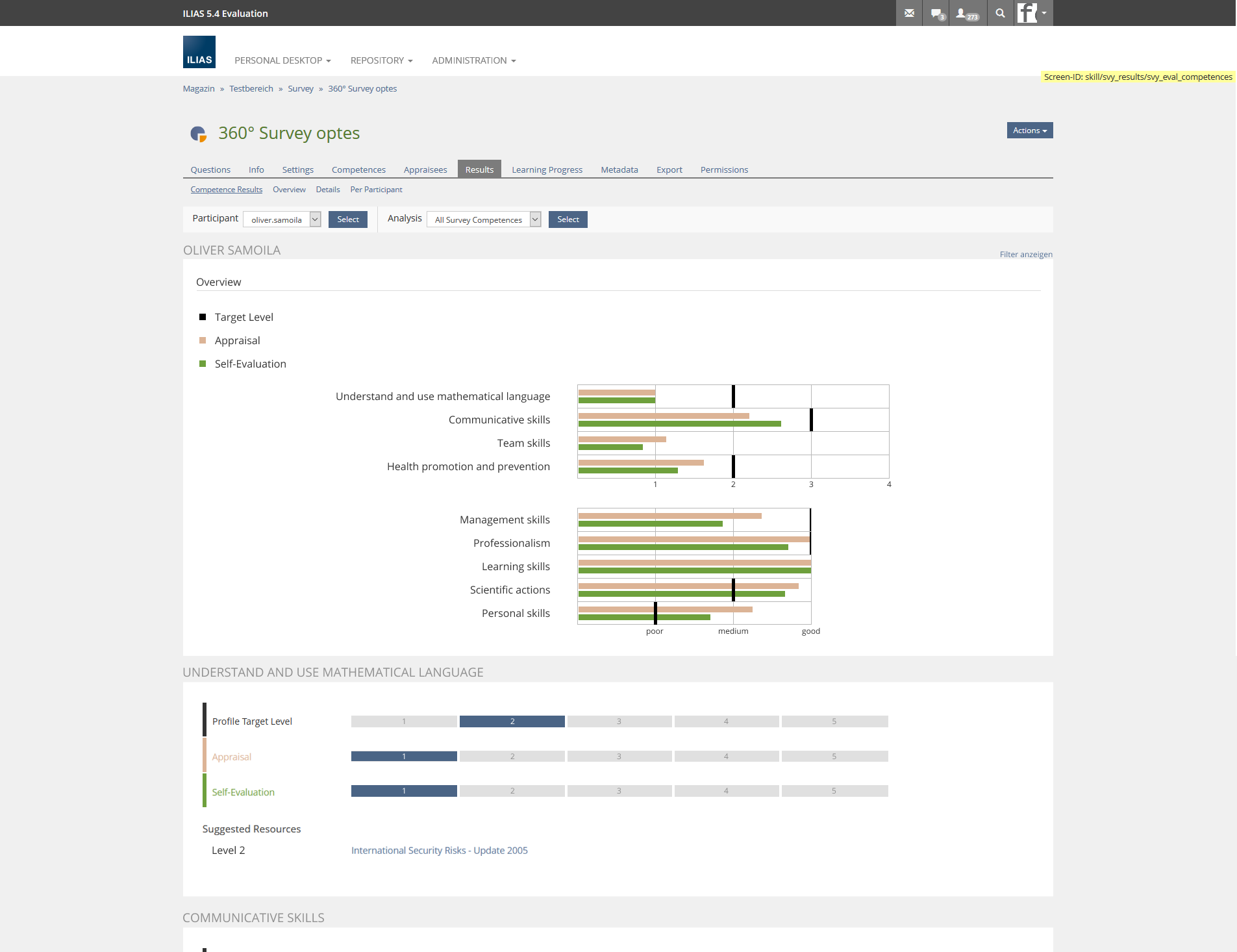 - Survey > Results > Competence Results