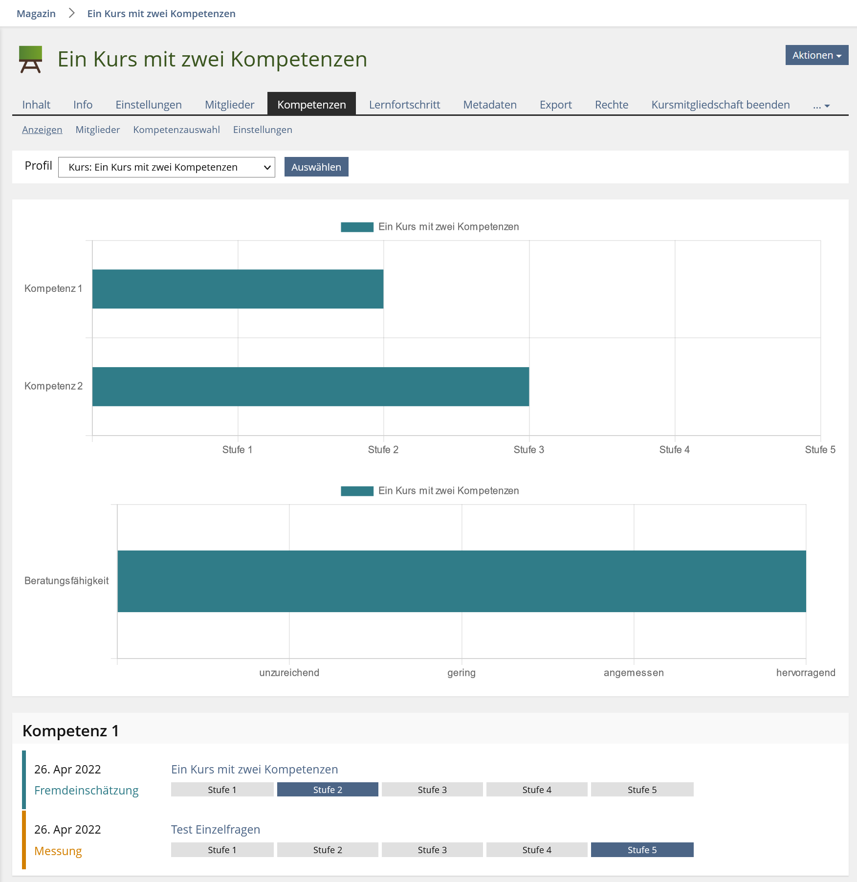 - Courses and Groups > Competences > Show