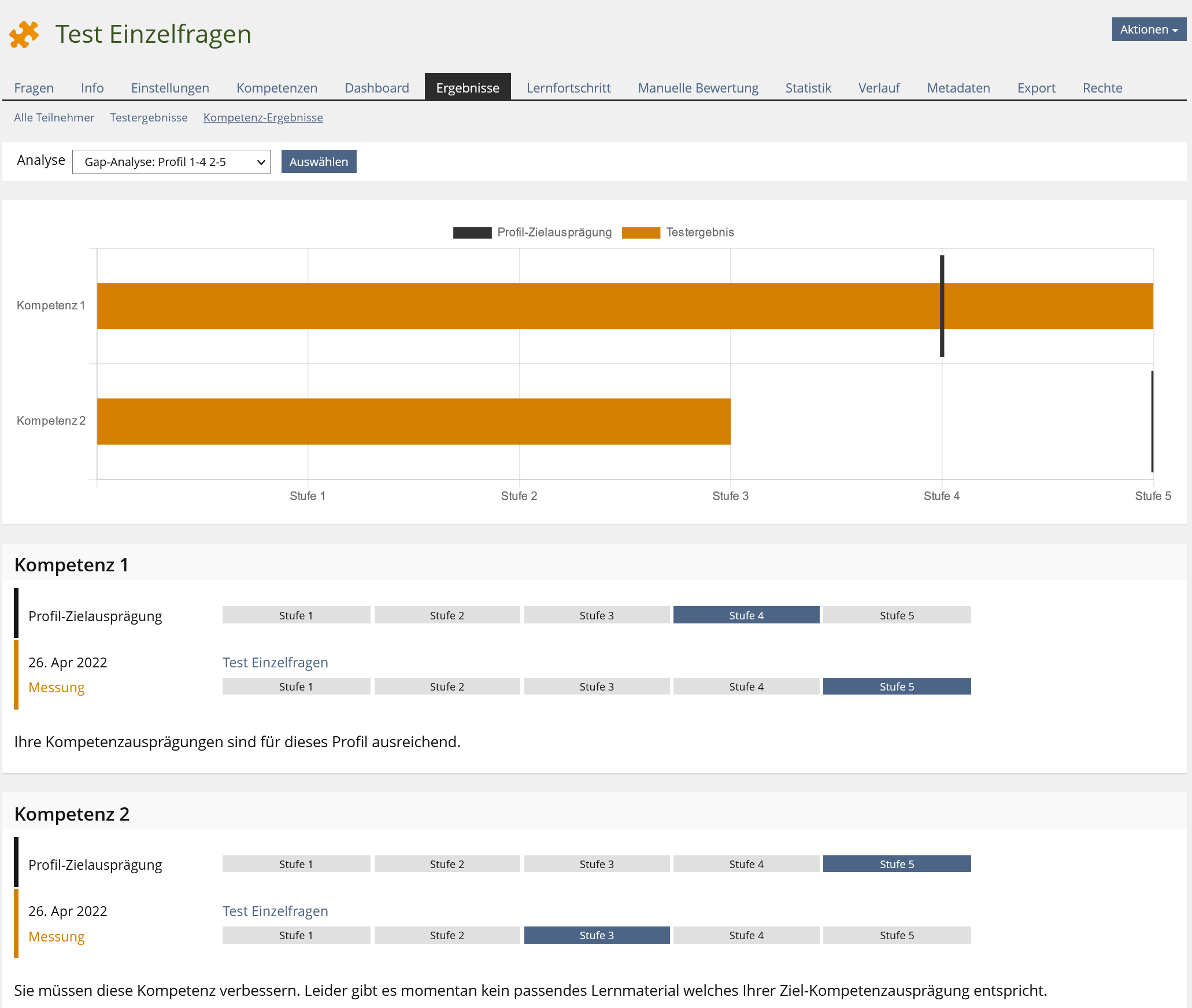 - Test > Results > Competence Results