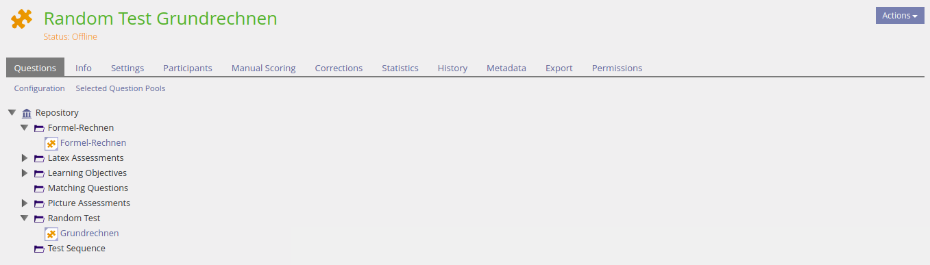 - C18731 : Random Test bietet Auswahl von Fragenpool über Repository Selektor an