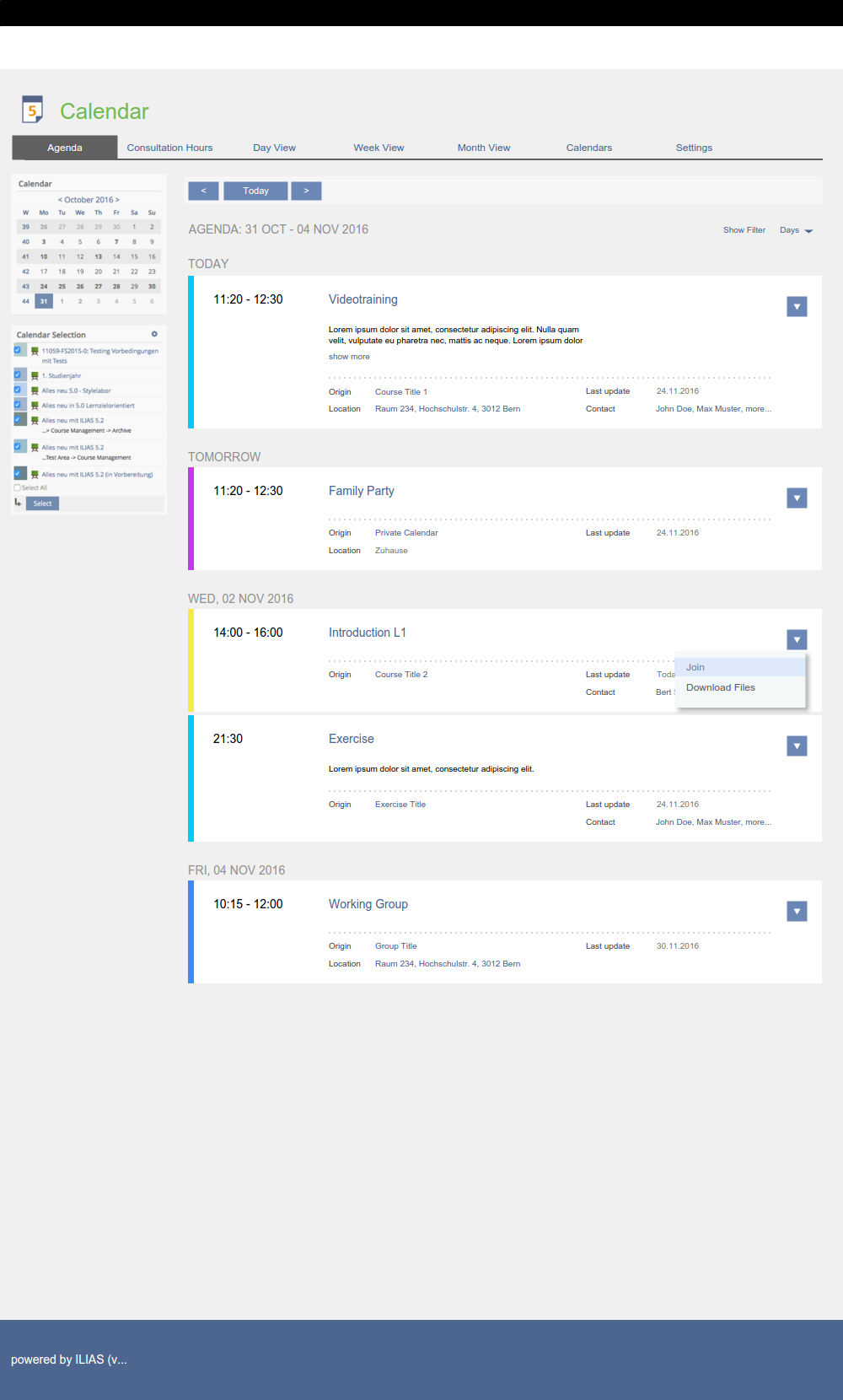 Appointement Listing Panel: https://github.com/ILIAS-eLearning/ILIAS/pull/399