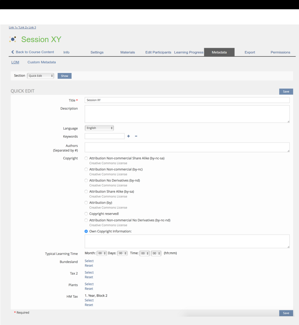 - The "Custom Metadata Sets"-table and the "New Data Set"- Form in ILIAS Administration > Metadata > Custom Metadata > Datasets is to allow global custom metadata sets to be assigned to sessions.