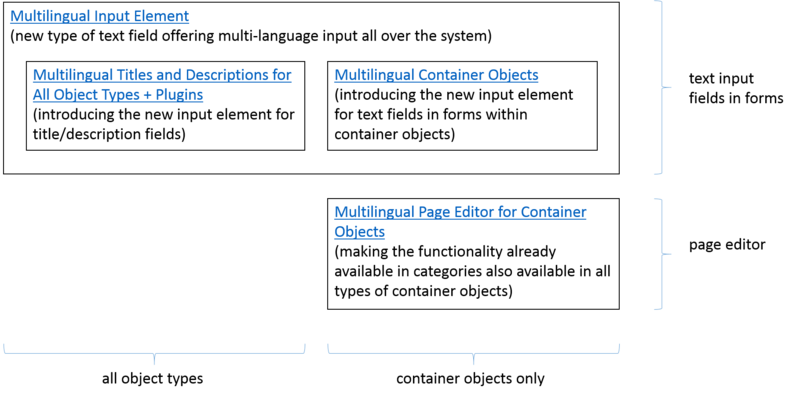We propose to enable the multilingual capability of the page editor for all container objects of the repository (courses, folders, groups - since categories already have it). The implementation should be identical to categoires.