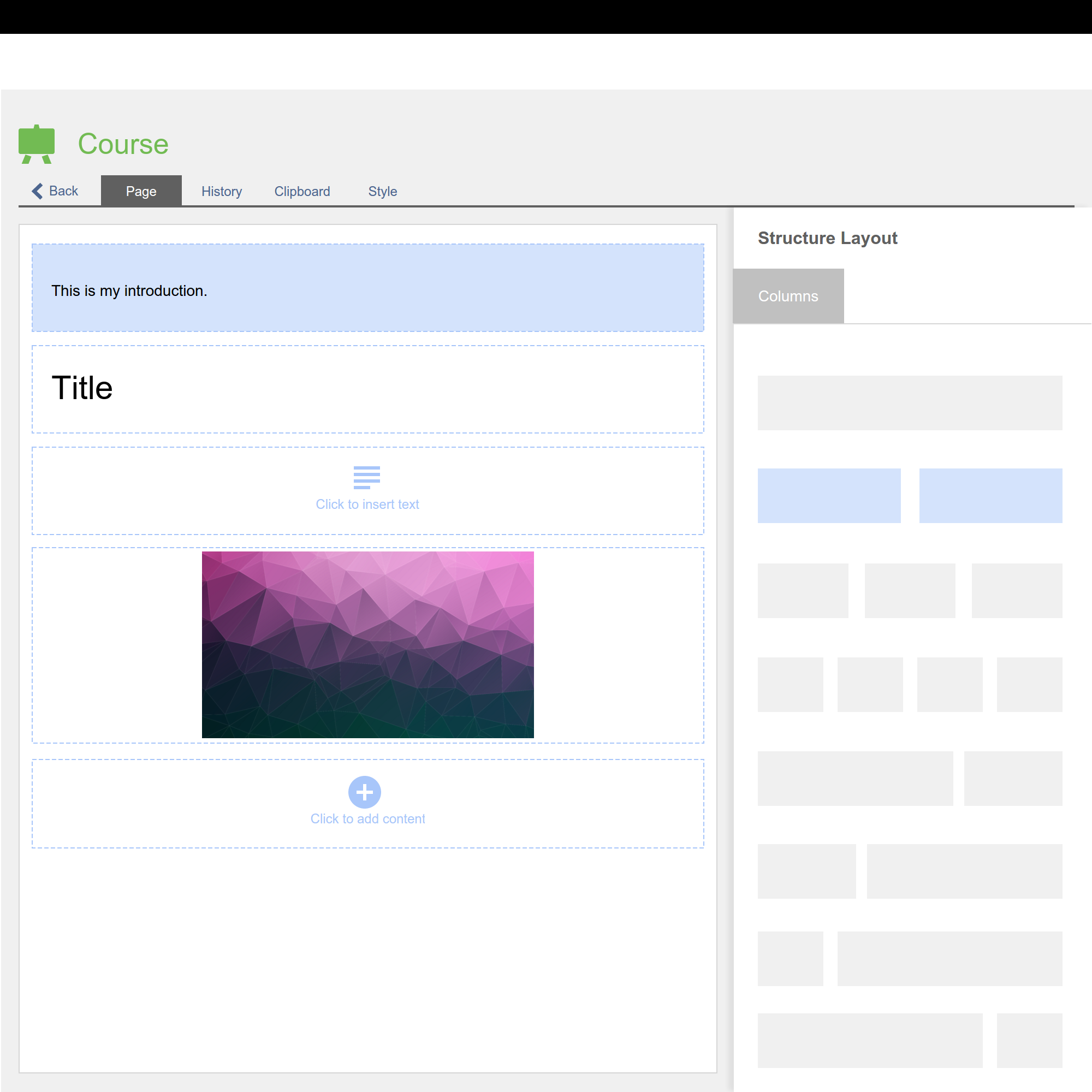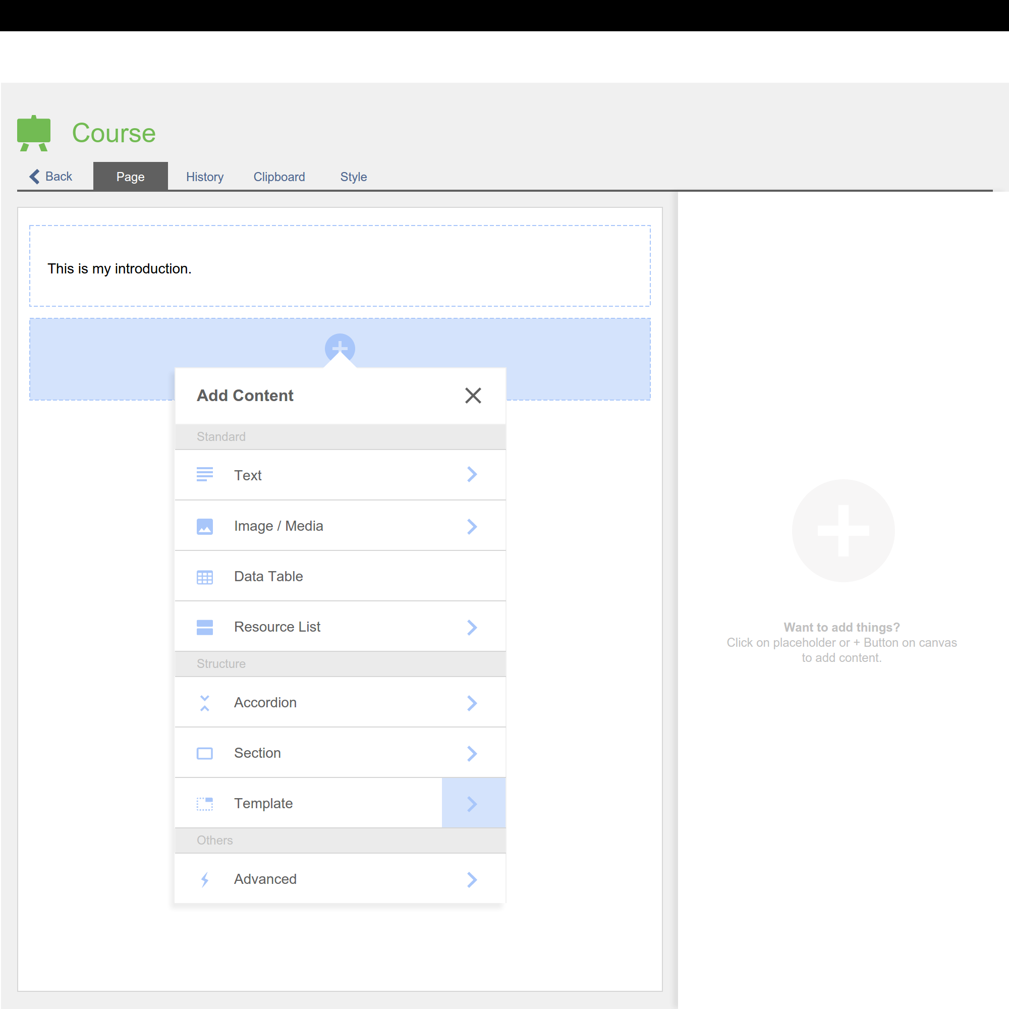 - Page Templates as known from the SCORM Editor are to be available in all instances of the Page Editor.