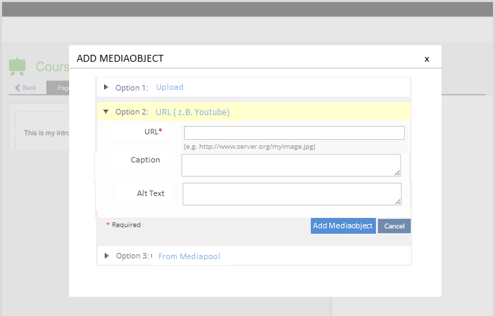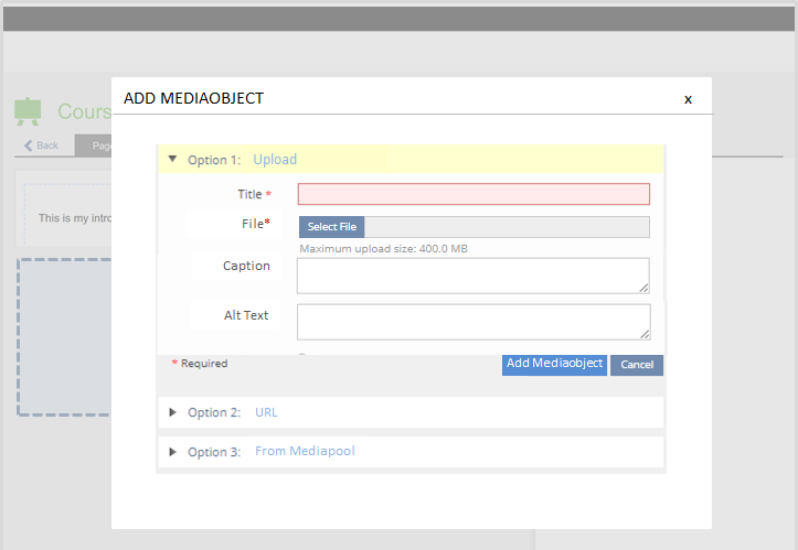 - We want to keep the one and single entry "Image / Media" and not have separate adding-options for a) images, b) video, c) Audio to keep the menue short