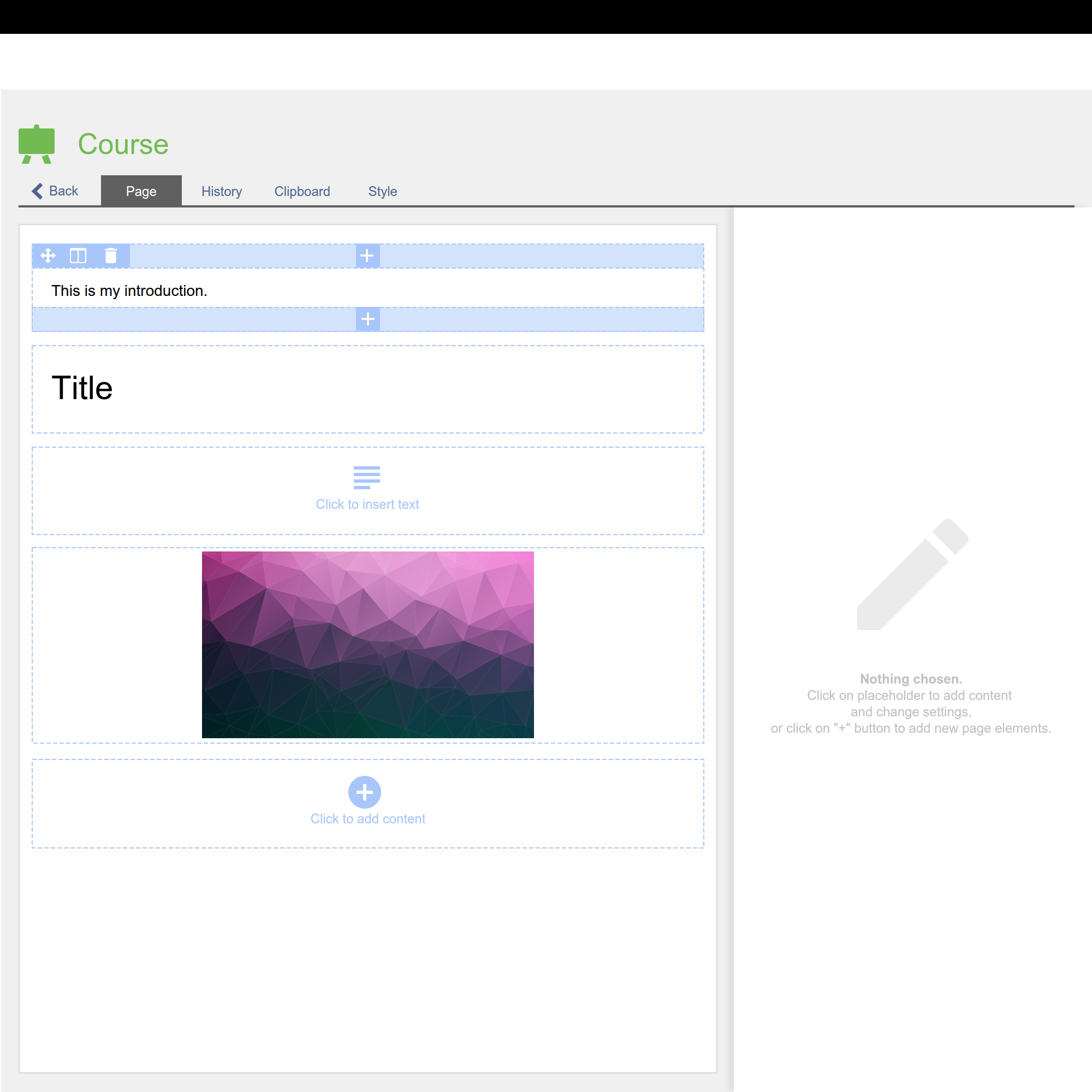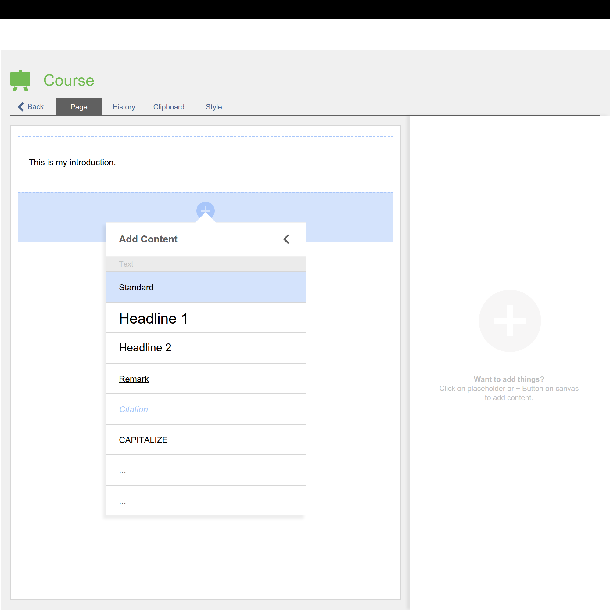 - On every page there is placeholder for "Text", so users can add text with one click. "Text" is considered the most likliest element.