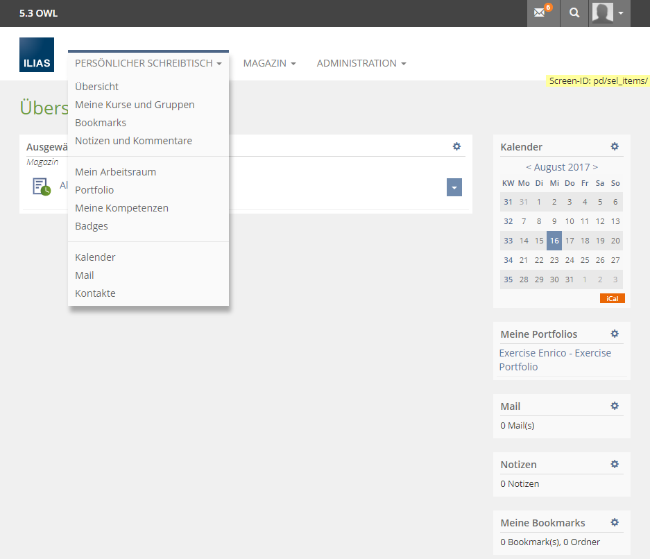 - "Badges" should be included in group of „My Workspace" and "Portfolio" as a fourth point. (Between „My Competences“ and „Learning Progress“.)