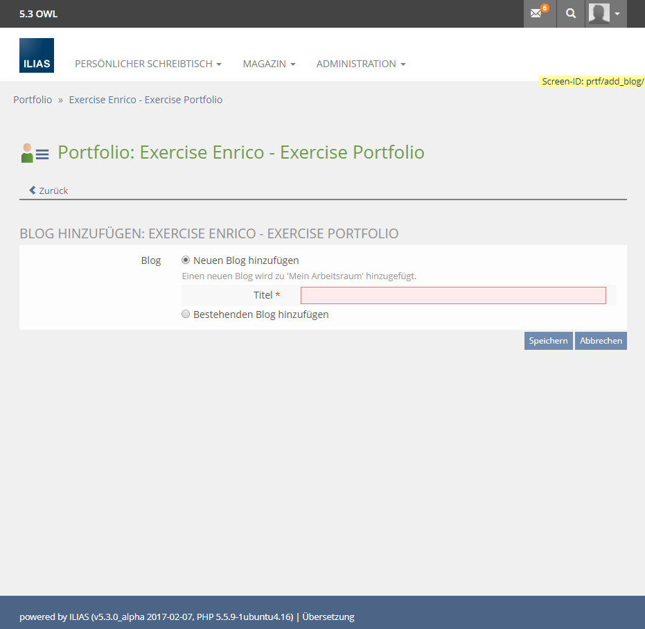 Screenshot: Adding a Portfolio: Weird Message about "no blog"