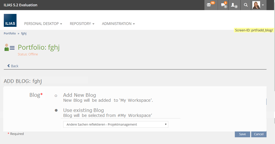 Screenshot: After clicking on "Add Blog" the "No Blog"-Message makes sense but the ensueing workflow is tiresome.
