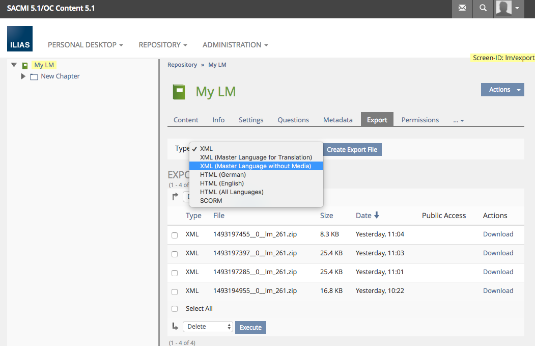Learning Module: Export Master Language without Media Objects