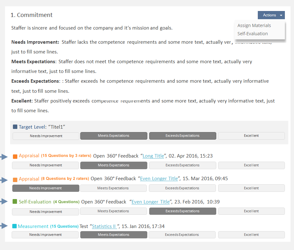 - Appaisal entries indicate a) number of questions answered, b) number of raters