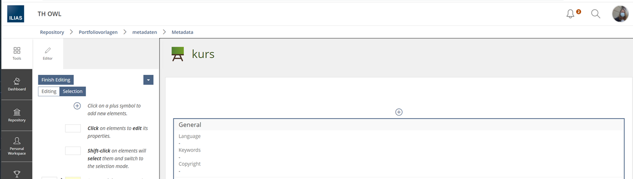 - Most Info tabs do not offer any way to add information on target group or educational purpose or similar. The Info tab offers metadata to users that is irrelevant or confusing.