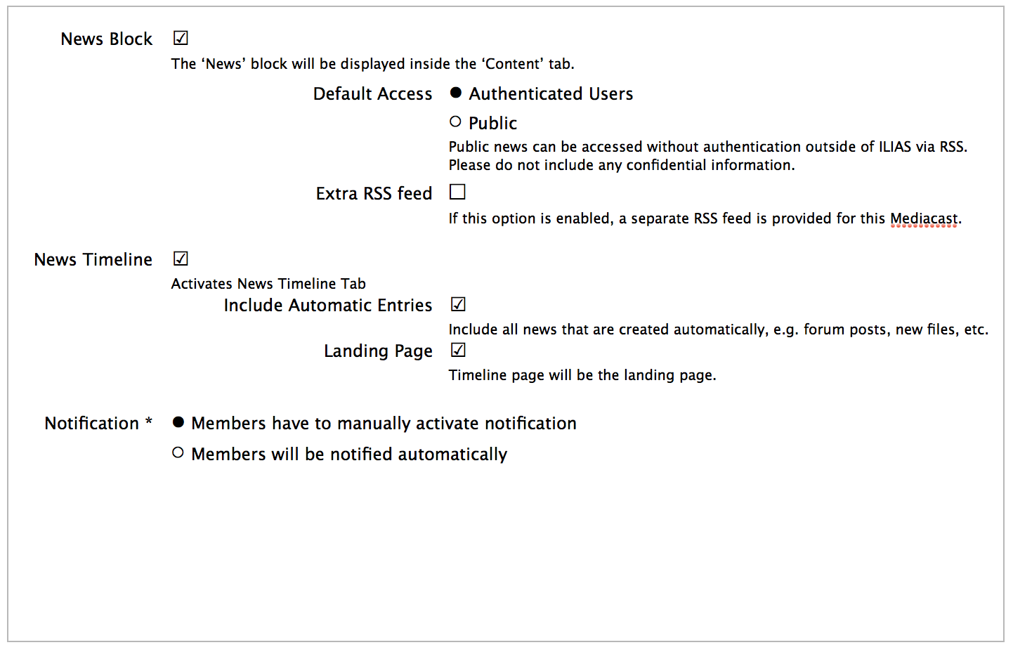 Besides: it would be great, if there was an administrative setting that controlled the default for this setting. We would like to enable the news / timeline feature for all new courses and groups, for instance. If funding should be an issue, talk to me again :)