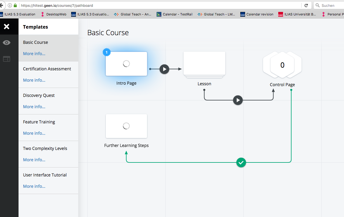 We want to make it easy to arrange existing learning resources and other ILIAS objects for individual learner requirements. We want to make it easy for learners to walk through these arrangements.