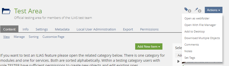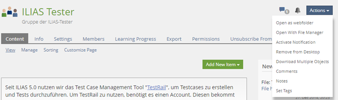 - Maintainer: Killing, Alexander [alex] for categories and folders, Meyer, Stefan [smeyer] for courses and groups