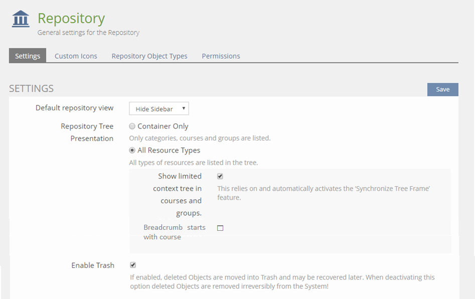 Killing, Alexander [alex], 2 Oct 2017: I think a course specific setting could be an additional feature. The advantage of a global setting is consistency throughout the entire installation. I do not understand why the setting should be a subsetting of "Repository Tree Presentation". I think it's an independent setting.