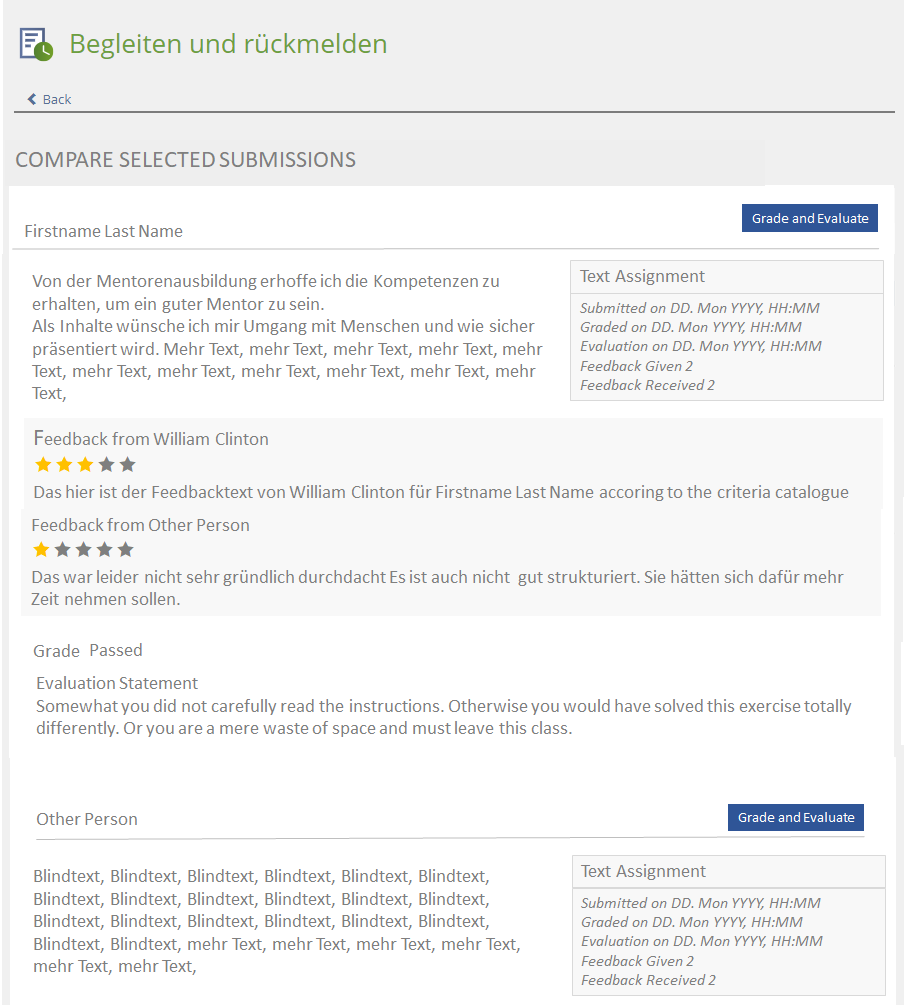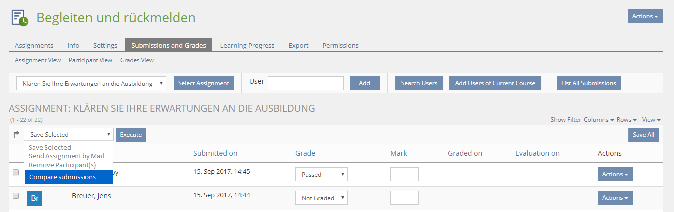 - Option 1: ILIAS shows the selected submissions in Reporting Panels underneath each other for immediate comparison in an underworld.