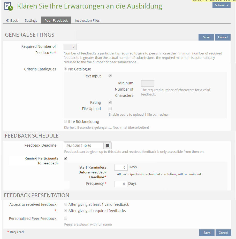 - Only one setting should be used to notify about submissions and gradings (we assume that always the same persons receive these notifications).