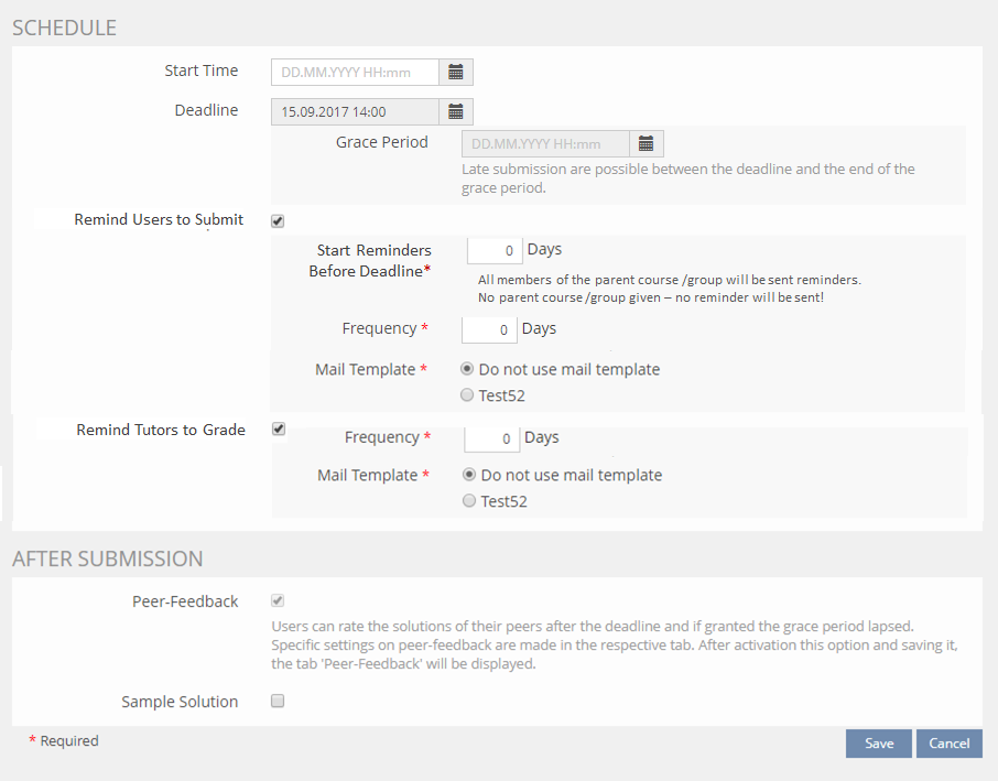 - We prefer three different context for the mail templates (reminder for submission, reminder for grading, reminder for peer review).