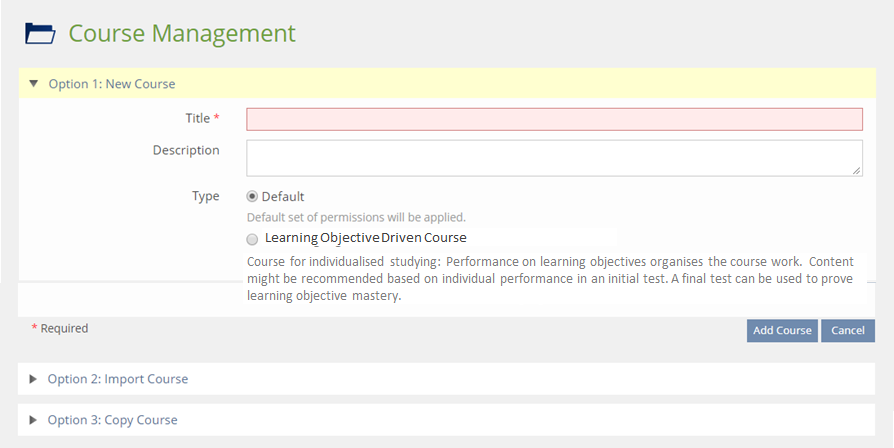 - If the course should behave like the survey and choosing 'Learning Objectives-Driven Course' could not be changed later, course authors already need to know at the very beginning of their course creation process if they want to run a course using learning objectives or not. Because a later change won't be possible. Is there any technical reason for such a strict behaviour - as it exists for the 360° survey? And would this type enable or disable other course settings or show new course tabs besides the already existing presentation of the 'Learning Objectives' tab - which makes it difficult or even impossible to change the setting later?