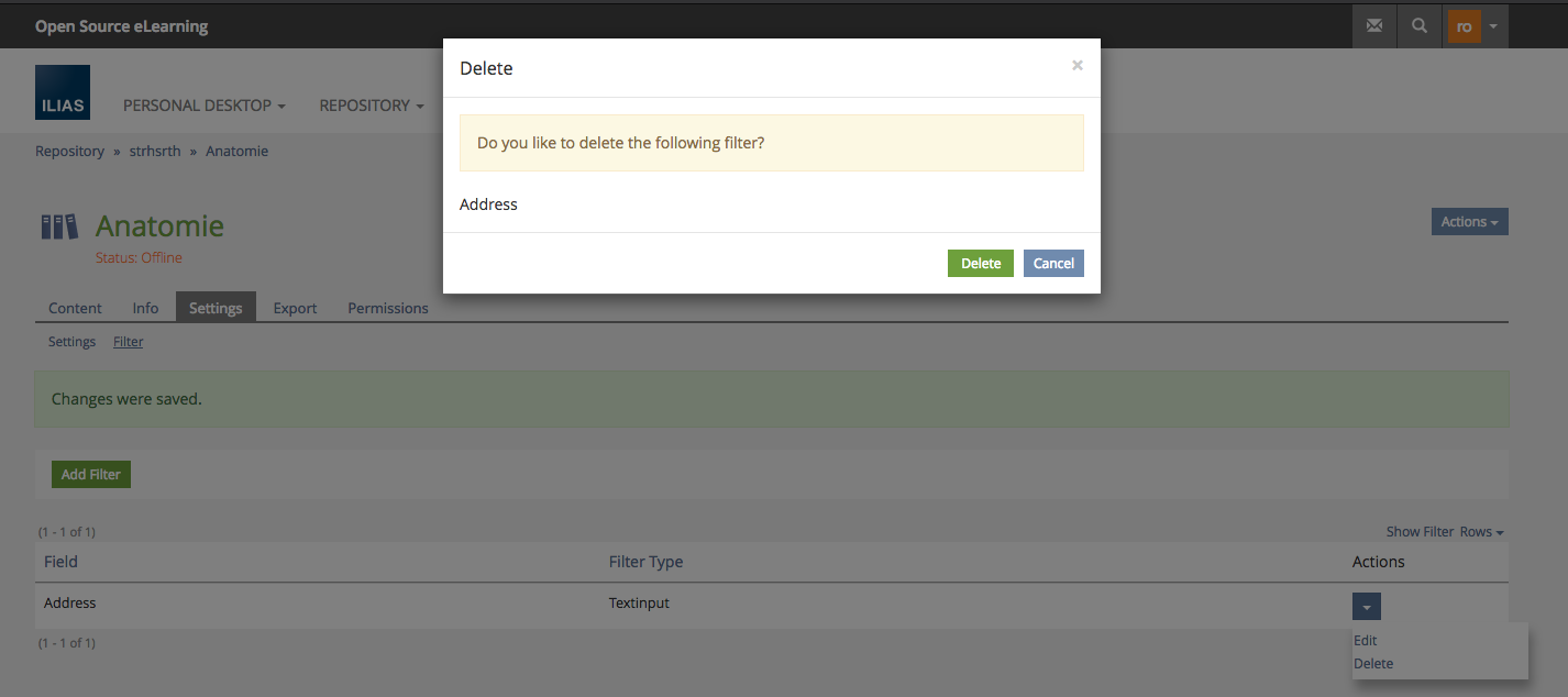 JourFixe, ILIAS [jourfixe], 18 JUN 2018 : We accept to use the "underworld" for add and edit filters and to use a modal only for the delete workflow. Reason is that we do not have a rule for the modal use in ADD and EDIT workflows.