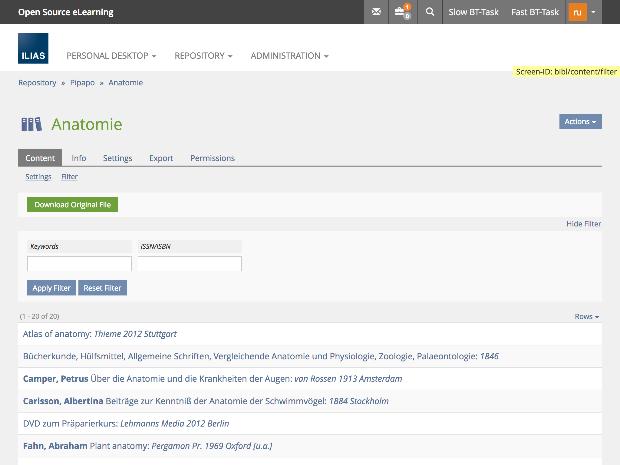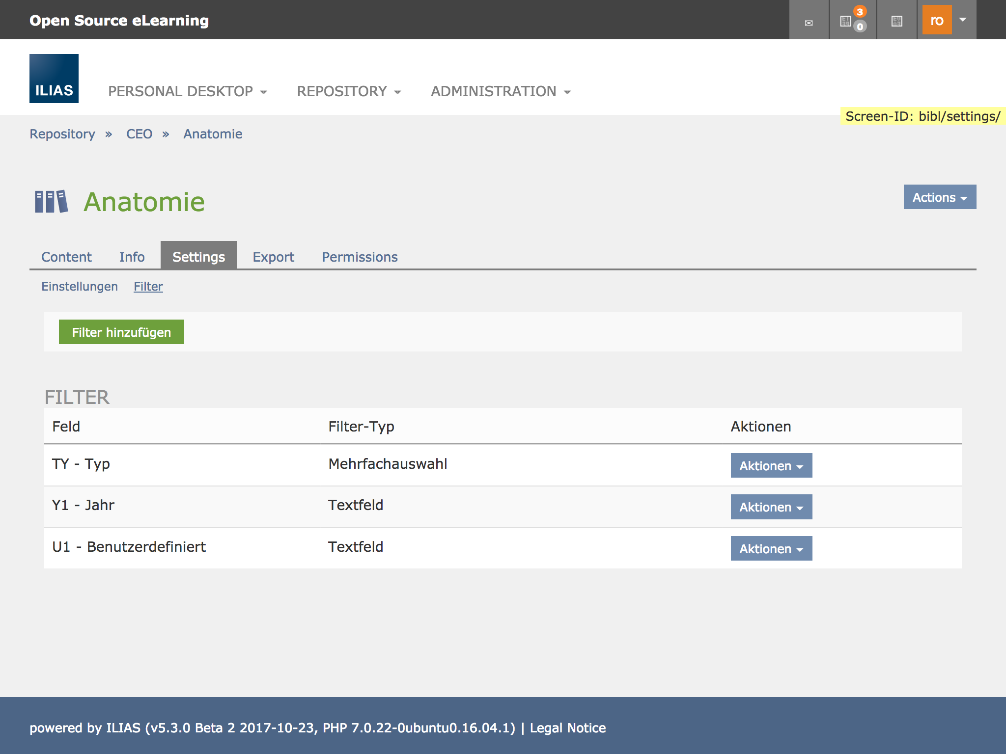- bibl/setting: New Subtab "Filters" (bibl/filters): See screenshot above