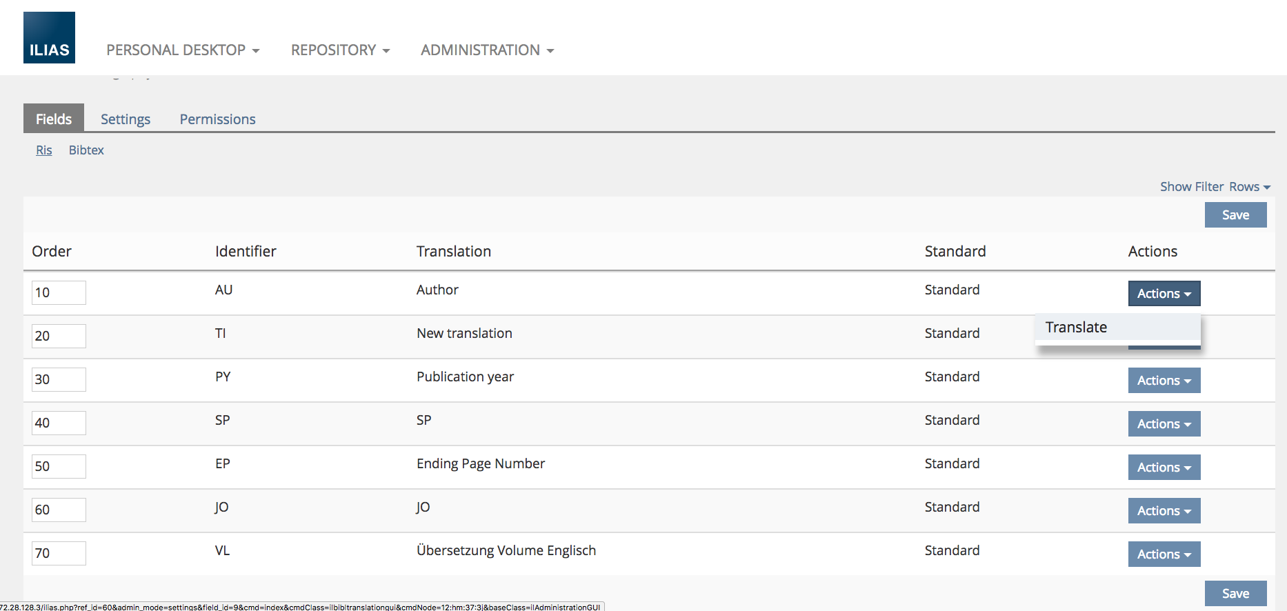 - bibs/settings: New Tab "Fields" / "Felder" divided by two subtabs "Ris" and "Bibtex".
