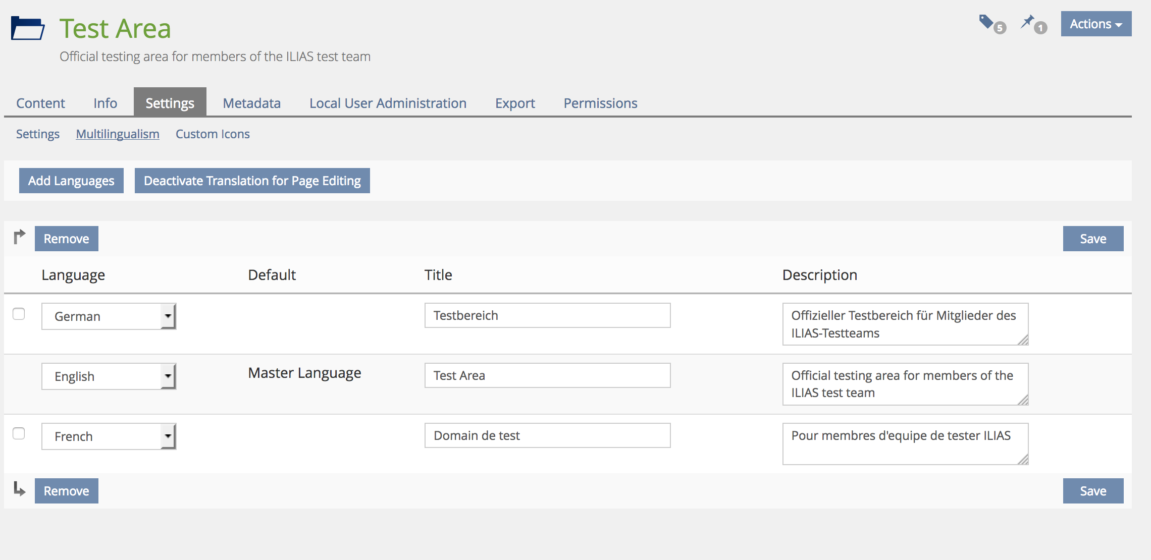 Kunkel, Matthias [mkunkel], 15 NOV 2017: How does the interface look like where a user adds the text for the different installed languages? Do you reuse the input like known from the multilingual category titles, see screenshot below?