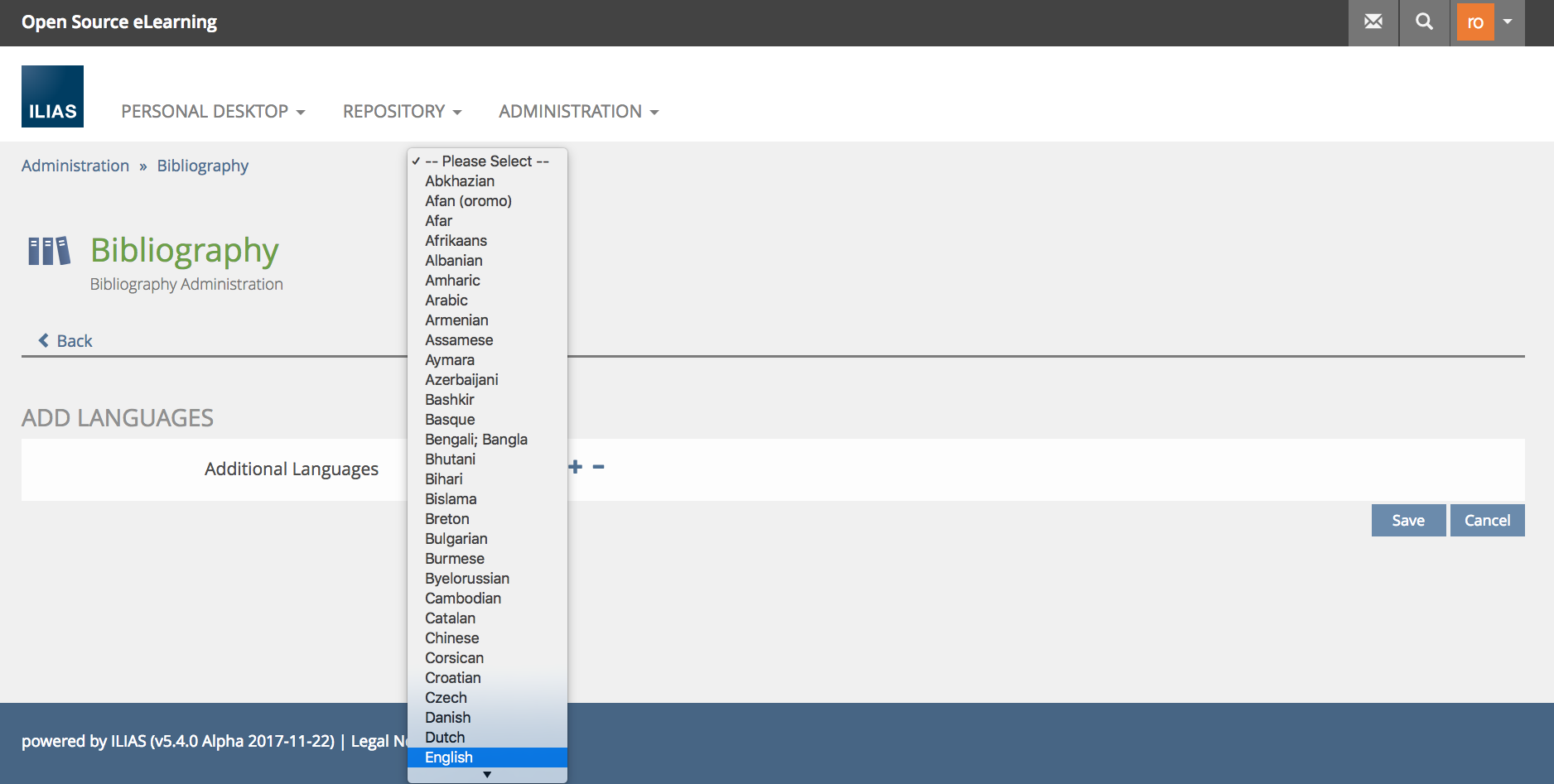 JourFixe, ILIAS [jourfixe], 20 NOV 2017: We highly appreciate this suggestion and schedule it for 5.4. Please re-use the multilingual editing form as suggested by Matthias (unless you have a conceptual or technical problem with this solution. If so, please come back to the JF with an alternative suggestion). We like the renaming of the Label "Settings" to "Libraries" in the Administration. Ordering of tabs is fine for us.