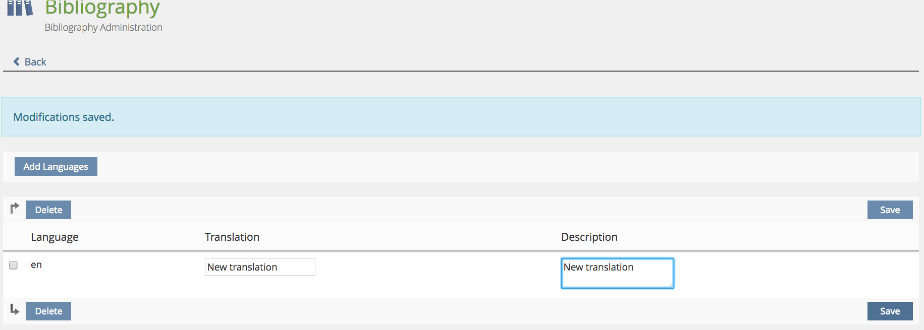 In the Administration an new Subtab is implemented (also see Bibliographic List Item: Sorting of Fields in Detail-View). Every non-standard-field can be translated for all activated languages. If a field is not explicitely available in the users language, first an existing tranlation in the systems language is used, last the old original labels is used.