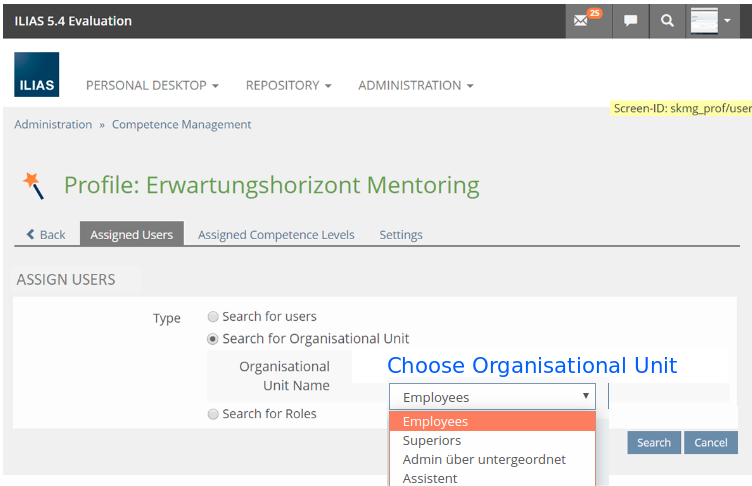 Competence profiles can be assigned to OrgUnits